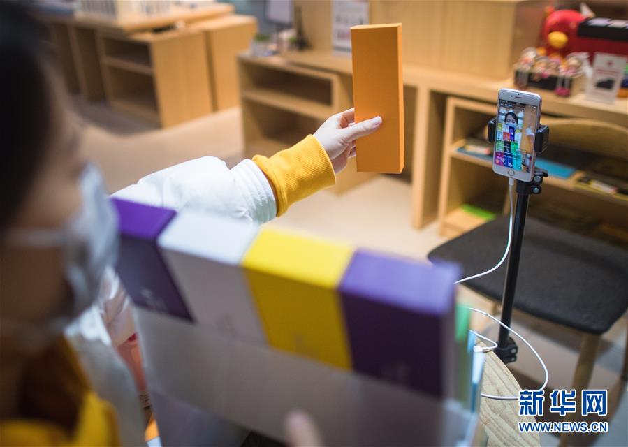 3月29日,在漢口北市場,一名主播在直播平臺(tái)直播銷售一款鋼筆。新華社記者肖藝九攝