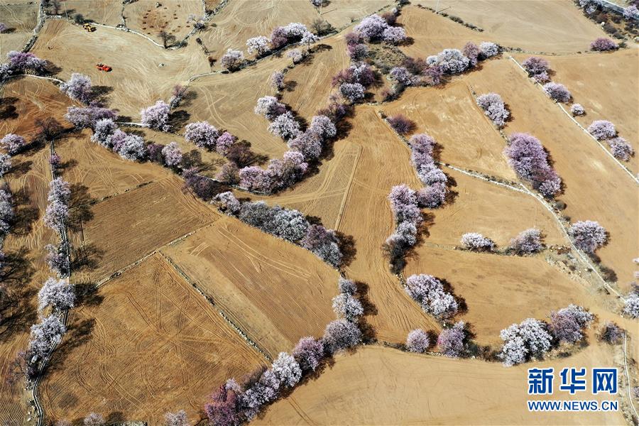 3月26日,西藏林芝境內(nèi)盛開的桃花(無人機(jī)照片)。新華社記者 孫非 攝
