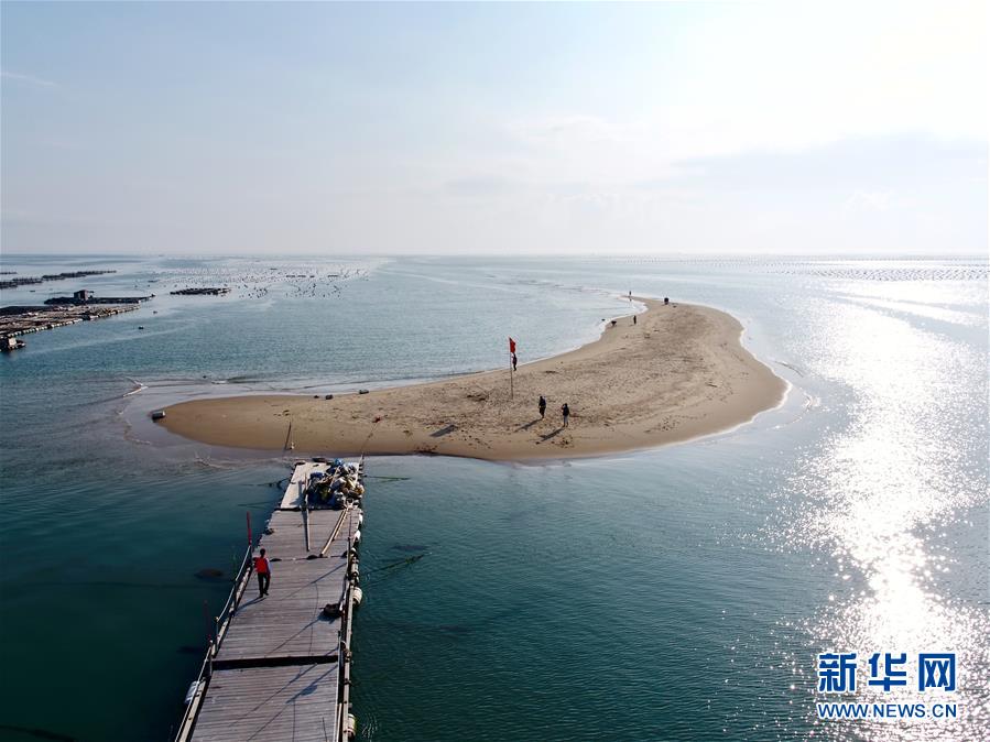 這是3月26日拍攝的福建漳州東山縣岐下村附近海域的魚(yú)骨沙洲(無(wú)人機(jī)照片)。新華社記者姜克紅攝