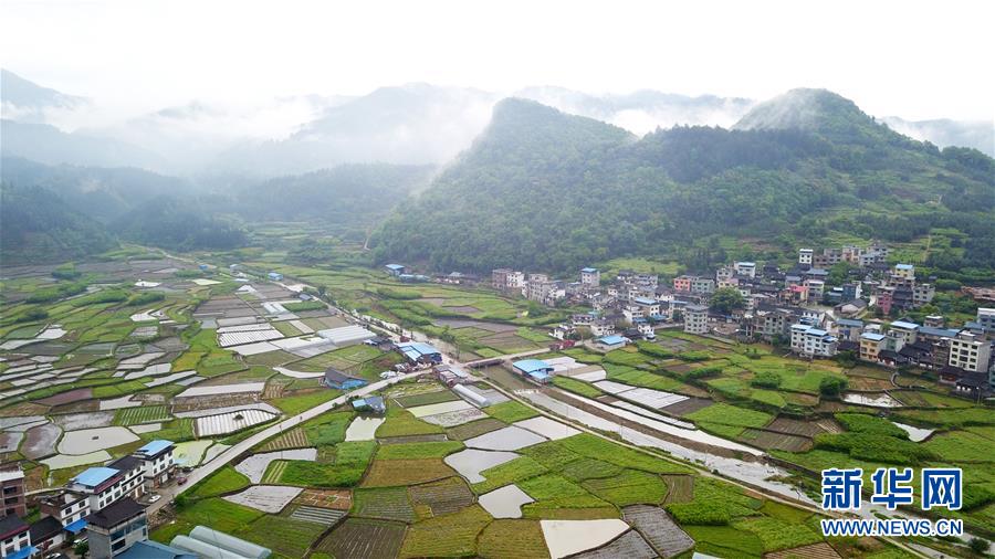 當(dāng)日,在貴州省黔東南苗族侗族自治州,一場(chǎng)春雨過(guò)后,村莊、山川、田野在薄霧中若隱若現(xiàn),美若畫卷。