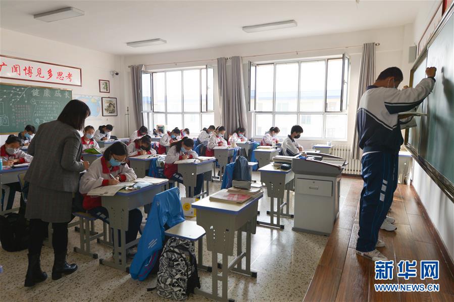 3月30日,呼和浩特市第六中學(xué)師生在教室內(nèi)上課。當(dāng)日,內(nèi)蒙古自治區(qū)全區(qū)高三和初三年級(jí)開(kāi)學(xué)復(fù)課。新華社記者徐欽攝