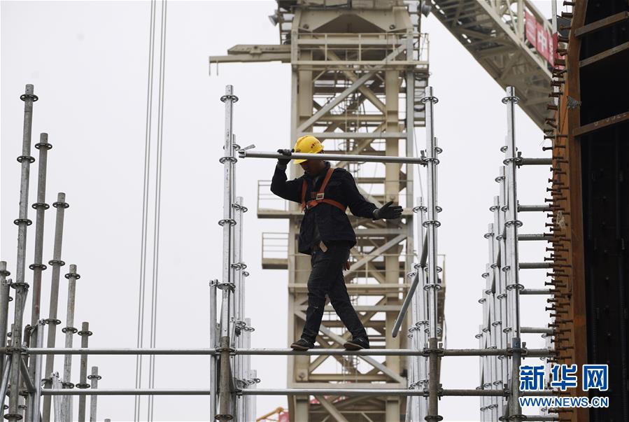 10月10日,工人在雄安站施工。新華社記者邢廣利攝