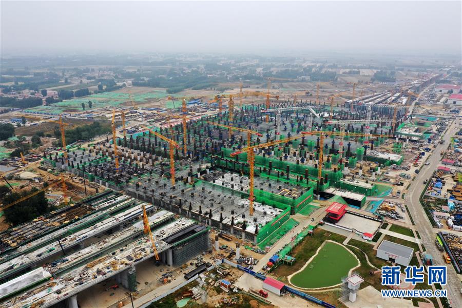 建設(shè)中的雄安站(10月10日無(wú)人機(jī)拍攝)。