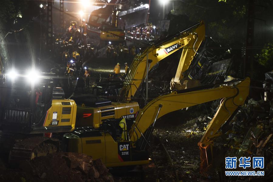 3月30日晚,工程機(jī)械在京廣鐵路郴州段脫軌事故現(xiàn)場(chǎng)作業(yè)。新華社記者李尕?cái)z