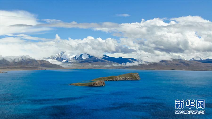 西藏納木錯風光(7月5日無人機拍攝)。新華社記者李鑫攝