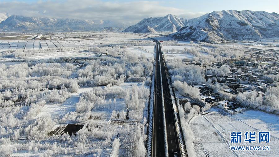 雅魯藏布江兩岸銀裝素裹雪景美如畫