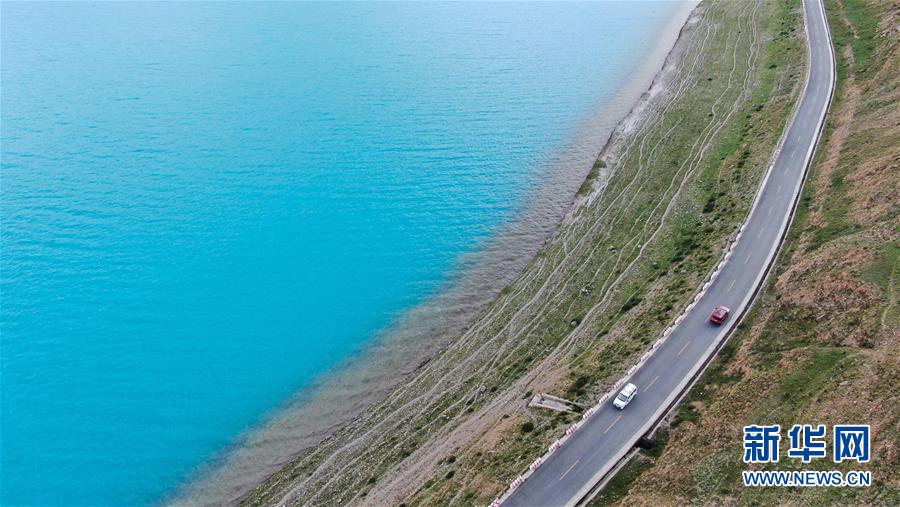 8月31日無人機(jī)拍攝的羊卓雍錯及邊上的307省道。新華社記者晉美多吉攝