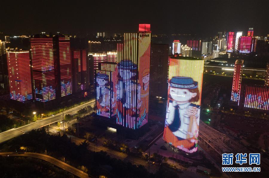 4月8日零時起,武漢市正式解除離漢離鄂通道管控措施,全市景觀照明開啟(無人機拍攝)。新華社記者程敏攝