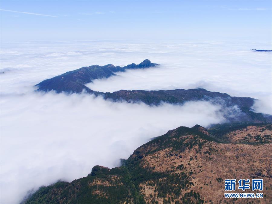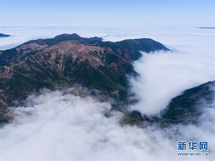 武夷山國家公園最高峰黃崗山云霧繚繞(4月1日攝,無人機(jī)照片)。新華社記者姜克紅攝