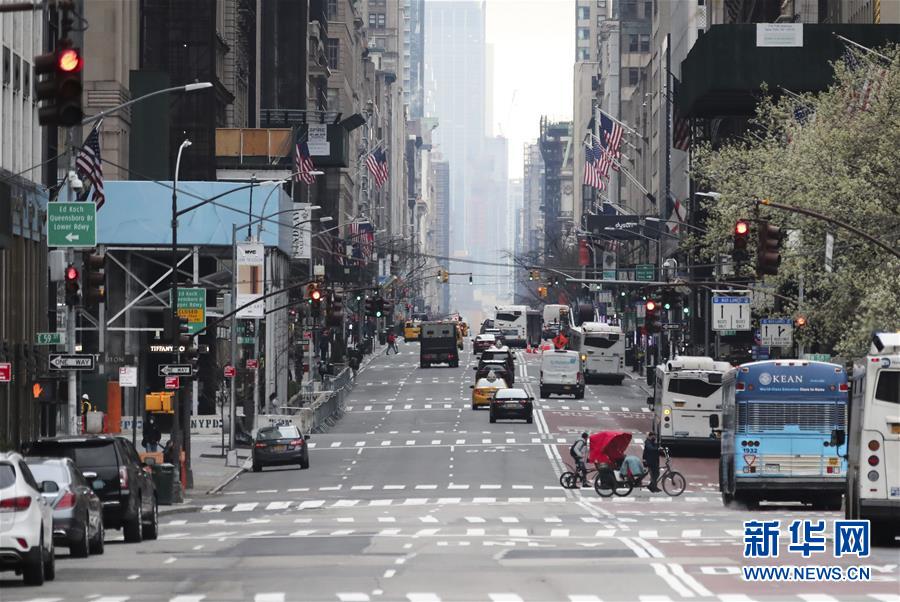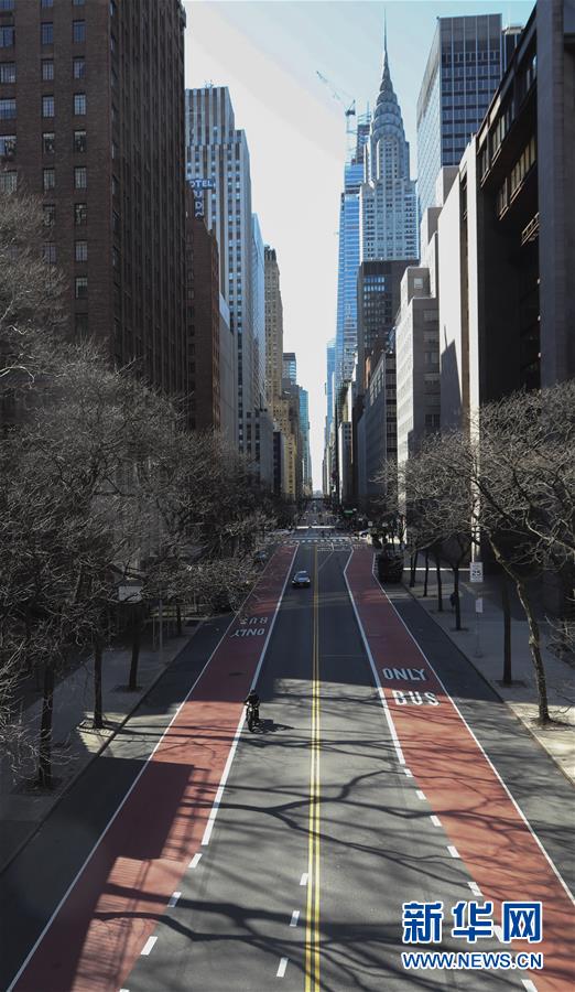3月19日,美國紐約曼哈頓街頭車輛稀少。新華社記者王迎攝