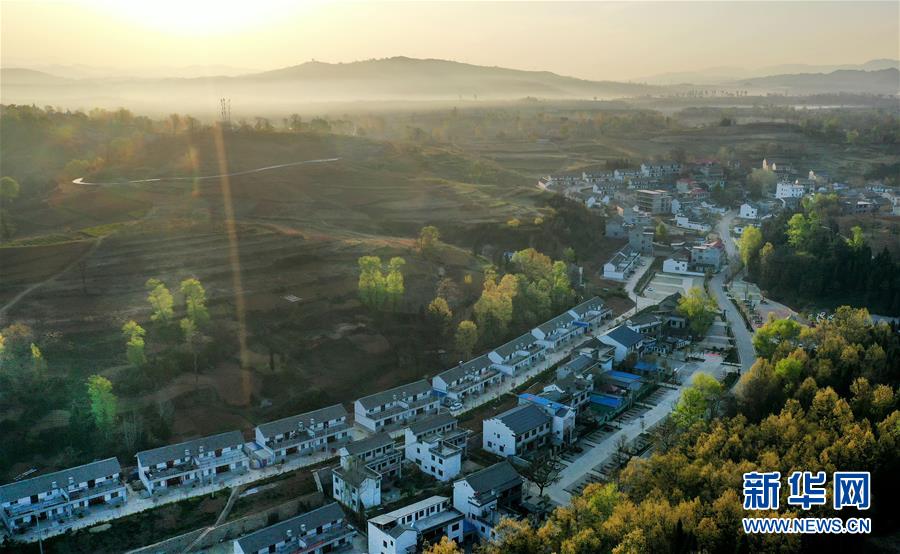 4月13日清晨時分拍攝的洛南縣城(無人機(jī)照片)。新華社記者陶明攝