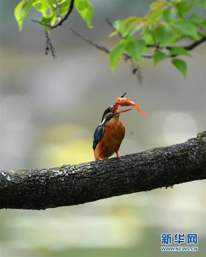 4月19日,在福州西湖公園,一只翠鳥捕到一條小魚。當(dāng)日是春季的最后一個(gè)節(jié)氣“谷雨”。此時(shí)節(jié),春天即將走到尾聲,萬物將展現(xiàn)出蓬勃生長的姿態(tài)。新華社記者魏培全攝