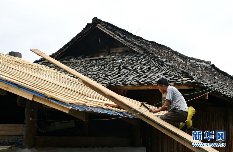 貴州省從江縣加榜鄉(xiāng)黨扭村村民在整治吊腳樓風(fēng)貌(4月16日攝)。貴州省從江縣把人居環(huán)境整治作為脫貧攻堅工作的一項重要舉措來抓,對鄉(xiāng)村規(guī)劃范圍內(nèi)長期無人居住的危房、廢棄禾倉、棚圈、柴草房和房前屋后的殘垣斷壁等進(jìn)行清理整治,進(jìn)行復(fù)墾復(fù)綠,同時開展農(nóng)戶衛(wèi)生和村寨環(huán)境整治,做到鄉(xiāng)村環(huán)境干凈、衛(wèi)生、整潔,扮靚美麗鄉(xiāng)村。新華社記者楊文斌攝