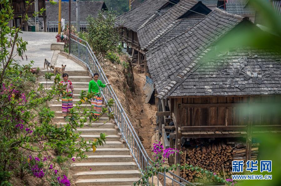 4月12日,在云南省勐海縣布朗山鄉(xiāng)曼囡村曼班三隊(duì),娜四(左)和妹妹走在村里。新華社記者胡超攝