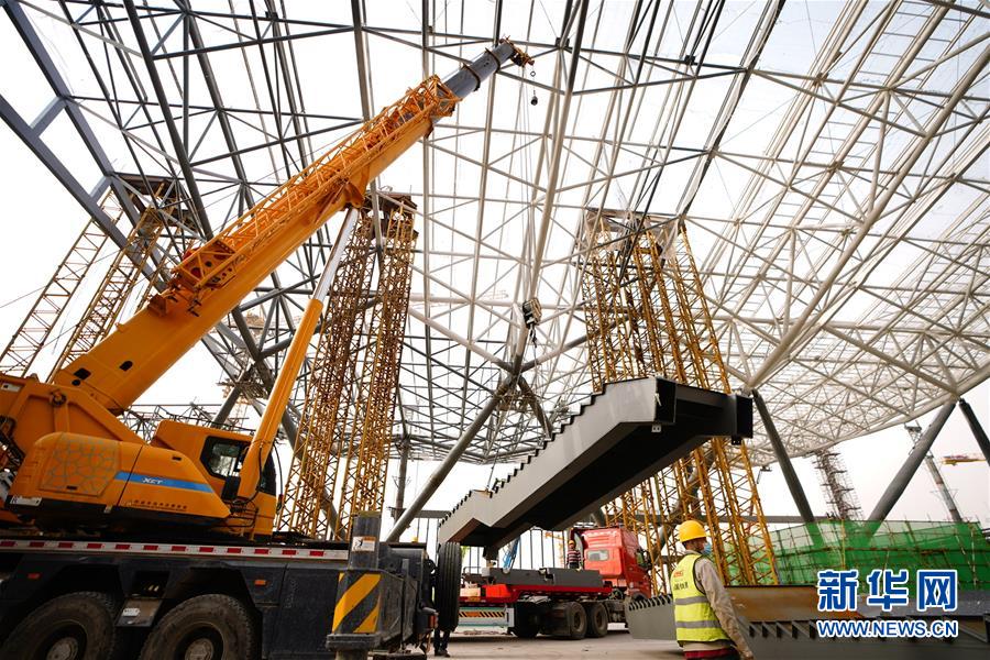 4月24日,中鐵建設(shè)集團的工人在星火站施工。北京星火站是京沈高鐵的始發(fā)站,站房總建筑面積18.3萬平方米,將于2020年底完工。目前正在進(jìn)行混凝土主體結(jié)構(gòu)收尾工作,鋼結(jié)構(gòu)主體正在緊張施工,即將完工。新華社記者邢廣利攝