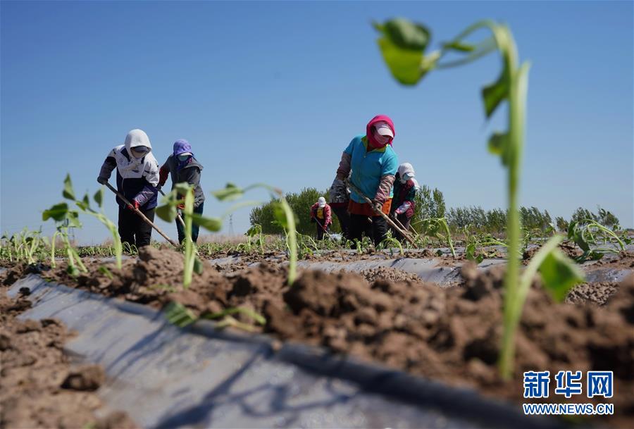 4月25日,灤南縣東黃坨鎮(zhèn)新戶村農(nóng)民給栽植好的煙薯秧苗培土。近年來(lái),河北省灤南縣利用當(dāng)?shù)赝寥篮蜌夂蛱攸c(diǎn),引導(dǎo)農(nóng)民因地制宜發(fā)展煙薯種植,取得良好效果。目前該縣煙薯種植面積達(dá)3萬(wàn)多畝,每畝年收入達(dá)5000多元。新華社記者楊世堯攝