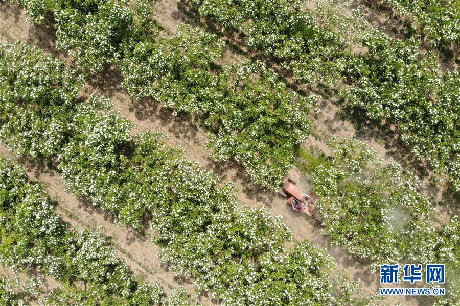 4月26日,農(nóng)民駕駛農(nóng)機(jī)在河北省清河縣馬屯紅果種植專業(yè)合作社的山楂種植區(qū)內(nèi)勞作(無人機(jī)照片)。4月下旬以來,河北省清河縣2萬余畝山楂樹競(jìng)相開花,成為一道亮麗的風(fēng)景線。清河縣年產(chǎn)山楂7.5萬余噸,山楂種植已成為當(dāng)?shù)剞r(nóng)民的重要增收途徑。新華社記者牟宇攝
