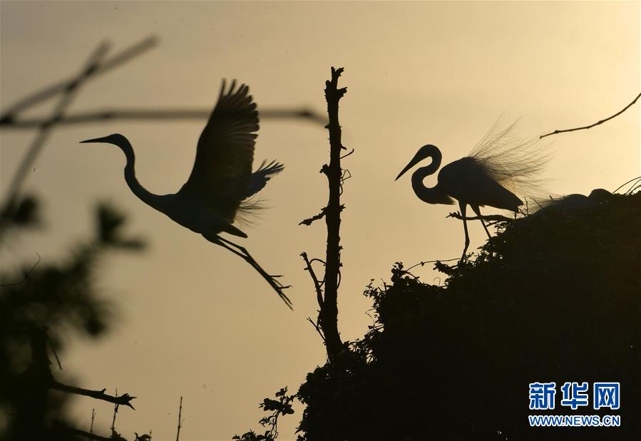 江西南昌“鷺鳥王國”生機(jī)勃勃