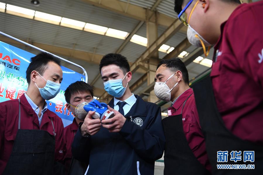 4月27日,常青街道凌大塘社區(qū)邀請專業(yè)人員到轄區(qū)企業(yè)車間為工人講解防護設(shè)備的使用方法。當(dāng)日,安徽省合肥市包河區(qū)常青街道開展健康講座、職業(yè)病防護宣傳等系列活動,提高勞動者的自我防護意識和能力,迎接“五一”國際勞動節(jié)。新華社記者劉軍喜攝