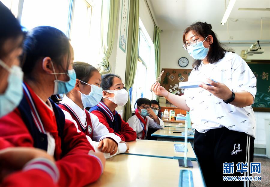 4月30日,諸暨市暨陽小學(xué)五年級4班班主任宣明霞在主題班會上向?qū)W生講解家庭用餐使用公筷公勺的重要性。當(dāng)日,浙江省諸暨市暨陽小學(xué)五年級4班開展“公筷公勺新家風(fēng)”主題班會活動,通過海報設(shè)計、情景劇表演等強(qiáng)化孩子們使用公筷公勺的意識,倡導(dǎo)文明用餐。新華社記者 韓傳號 攝