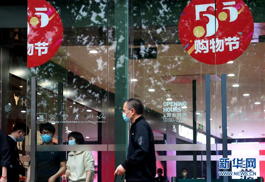 上海一家商場布置的“五五購物節(jié)”標(biāo)識(5月5日攝)。5月4日晚,上海首次啟動大規(guī)模商業(yè)促銷活動“五五購物節(jié)”,多家在線新經(jīng)濟(jì)企業(yè)參與,通過線上流量優(yōu)勢反哺線下賣場,實(shí)現(xiàn)電商與實(shí)體零售融合互動,激活消費(fèi)潛力、驅(qū)動消費(fèi)復(fù)蘇。據(jù)“上海發(fā)布”的消息,截至5日14時12分,“五五購物節(jié)”上海地區(qū)消費(fèi)支付總額已超100億元。新華社記者劉穎攝