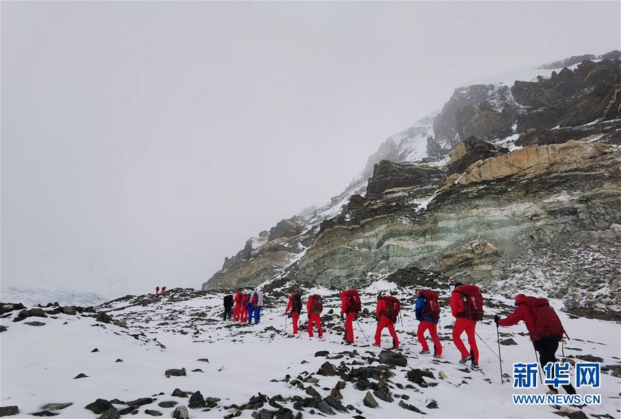 5月7日,2020珠峰高程測量登山隊前往海拔6500米的前進營地。新華社特約記者拉巴攝