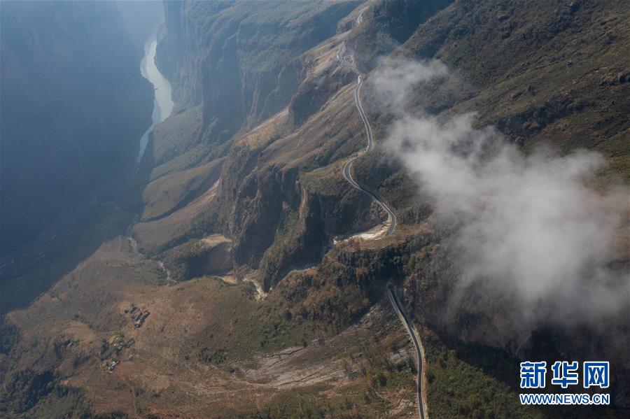 這是布拖縣阿布洛哈村通村公路(2019年12月29日攝,無人機照片)。新華社記者江宏景攝