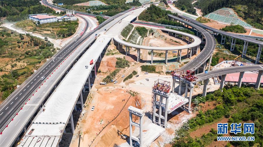 都安高速改擴(kuò)建路段的惠水樞紐(無人機(jī)照片,5月9日攝)。 新華社記者 陶亮 攝