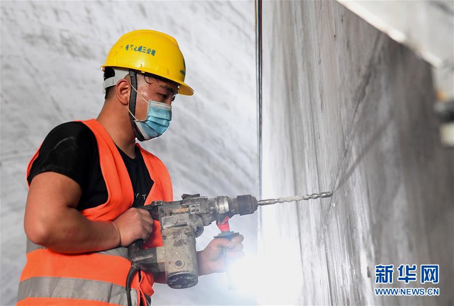 5月10日,中鐵電氣化局工程人員在鄭州新鄭機(jī)場(chǎng)至鄭州南站城際鐵路工地施工。新華社記者郝源攝