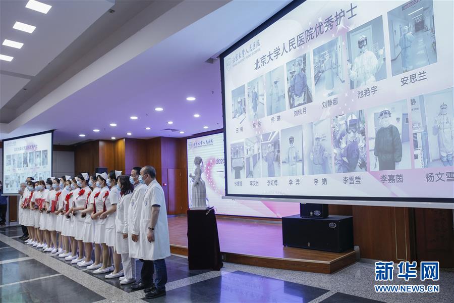 5月11日,獲獎(jiǎng)護(hù)士在護(hù)士節(jié)活動(dòng)上合影。在國(guó)際護(hù)士節(jié)到來(lái)之際,北京大學(xué)人民醫(yī)院11日舉辦慶祝護(hù)士節(jié)暨優(yōu)秀集體和個(gè)人表彰活動(dòng),并邀請(qǐng)?jiān)踽t(yī)療隊(duì)護(hù)士代表分享戰(zhàn)“疫”故事。我國(guó)今年護(hù)士節(jié)的主題為“致敬護(hù)士隊(duì)伍,攜手戰(zhàn)勝疫情”。新華社記者張玉薇攝