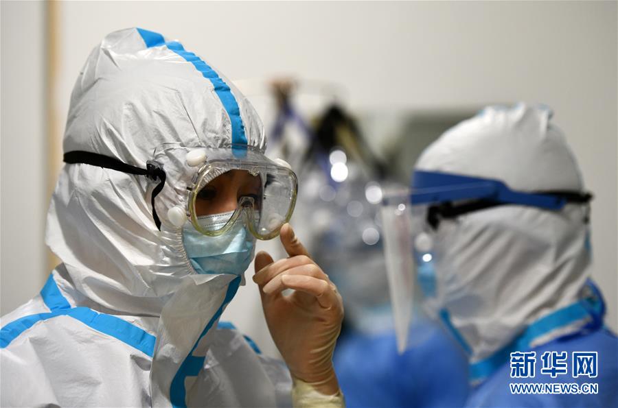 5月11日,在空港醫(yī)院的隔離病房,護(hù)士整理護(hù)目鏡準(zhǔn)備進(jìn)入“紅區(qū)”。新華社記者李然攝
