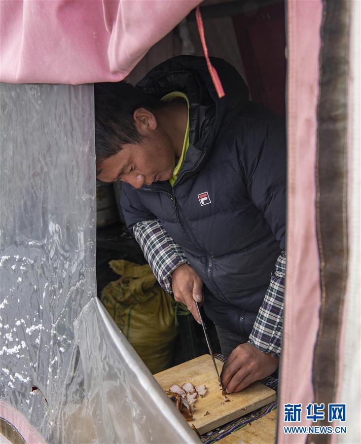 在海拔6500米的珠峰前進(jìn)營地,一名高山廚師在準(zhǔn)備菜品(5月10日攝)。新華社記者孫非攝