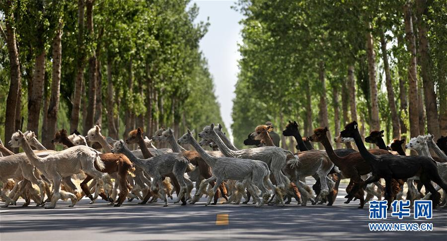 5月13日,剪下絨毛的羊駝從養(yǎng)殖基地的牧場返回飼養(yǎng)舍。