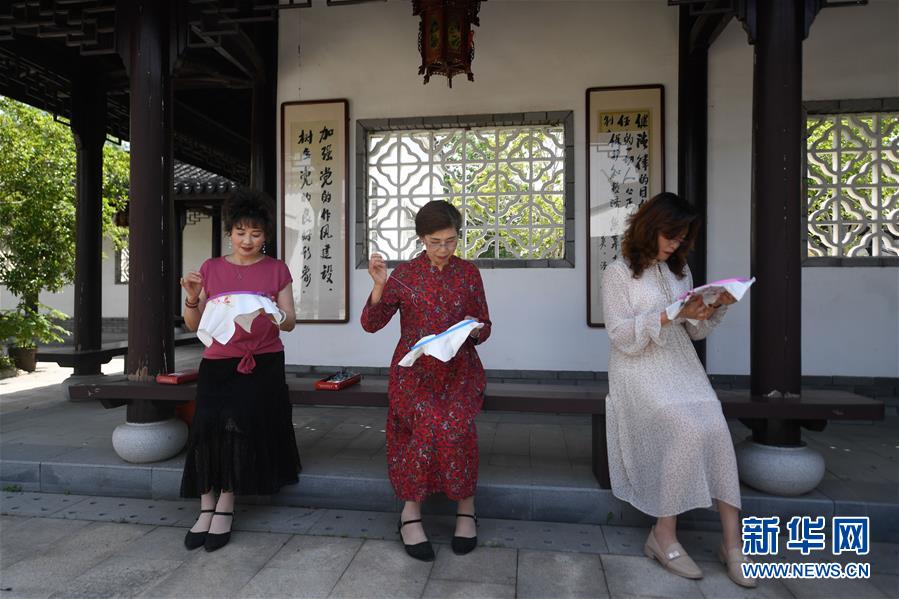 5月13日,潞村繡坊的刺繡愛(ài)好者在參加刺繡活動(dòng)。新華社記者黃宗治攝
