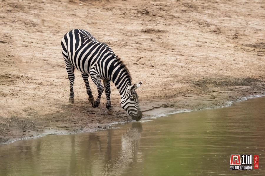 當(dāng)時有超過1000只斑馬,正在河岸上等候合適的機(jī)會過河,它們快速低頭喝水后又迅速返回河岸。