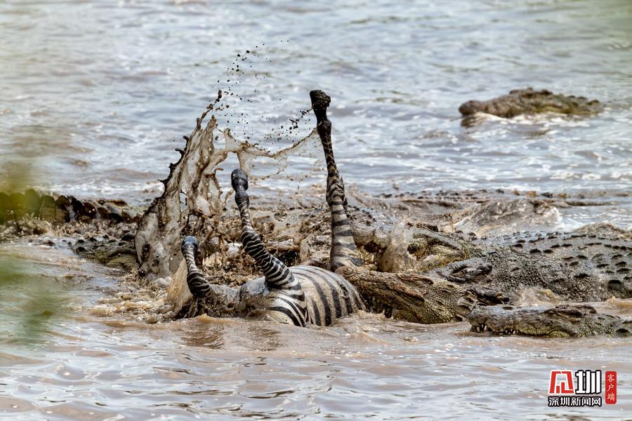 斑馬遭鱷魚伏擊。