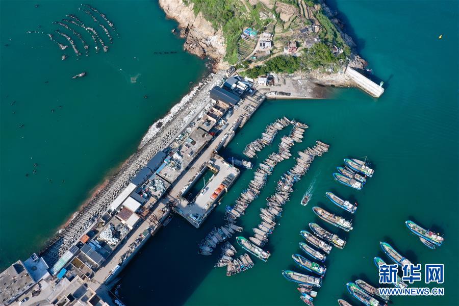 5月13日,休漁漁船停泊在福建省連江縣安凱鄉(xiāng)奇達村漁港內(無人機照片)。新華社記者姜克紅攝