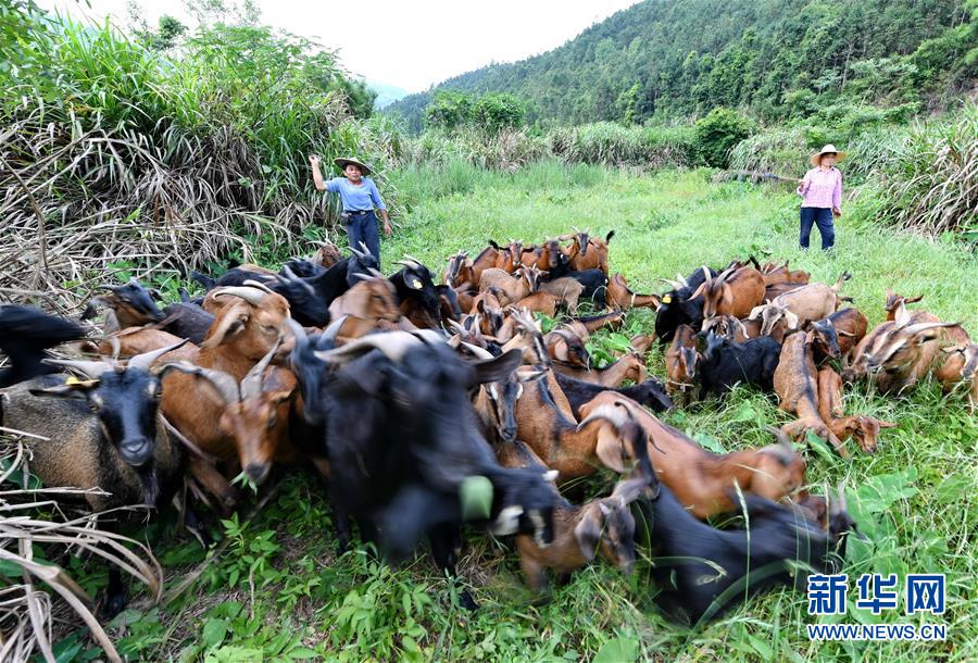 5月13日,在福建省建甌市小橋鎮(zhèn)陽澤村,村民呂元鑫(左)和妻子一起放羊。62歲的呂元鑫曾因病返貧,2016年后通過扶貧貸款從事山羊養(yǎng)殖,現(xiàn)已還清貸款,每年養(yǎng)殖收入兩三萬元。新華社記者林善傳攝