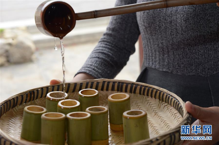 5月14日,在貴州省畢節(jié)市百里杜鵑管理區(qū)黃泥鄉(xiāng)龍?zhí)链逡患揖谱鞣唬迕裨谟^察蒸餾出酒。貴州省畢節(jié)市百里杜鵑管理區(qū)黃泥鄉(xiāng)龍?zhí)链宓凝執(zhí)凉啪疲颡?dú)特的古法釀酒技術(shù),口感獨(dú)特而遠(yuǎn)近聞名。全村有釀酒戶142戶,年產(chǎn)量達(dá)45萬多公斤,龍?zhí)凉啪七h(yuǎn)銷重慶、廣東、浙江等地,龍?zhí)凉啪埔殉蔀辇執(zhí)寥嗽鍪盏闹匾獊碓?。新華社記者楊楹攝
