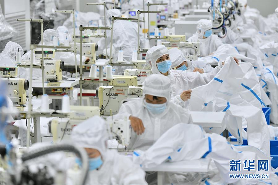 在福建晉江,工人在生產(chǎn)防護(hù)服(2月4日攝)。新華社記者姜克紅攝