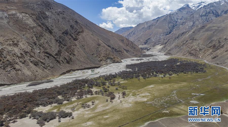 珠穆朗瑪峰國家級自然保護(hù)區(qū)內(nèi)的沙棘林和濕地(5月16日攝,無人機(jī)照片)。新華社記者普布扎西攝