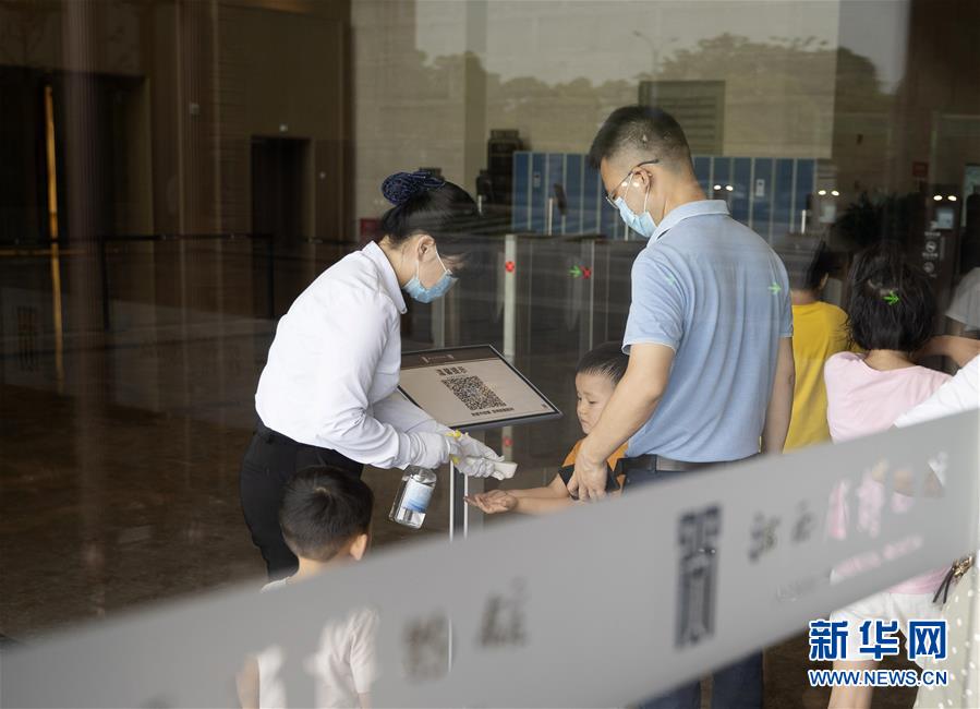 5月17日,在江西省博物館新館,參觀者入館前測(cè)量體溫。江西省博物館新館在做好疫情防控的前提下有序開(kāi)放,公眾可通過(guò)網(wǎng)上預(yù)約參觀游覽。新華社記者張浩波攝