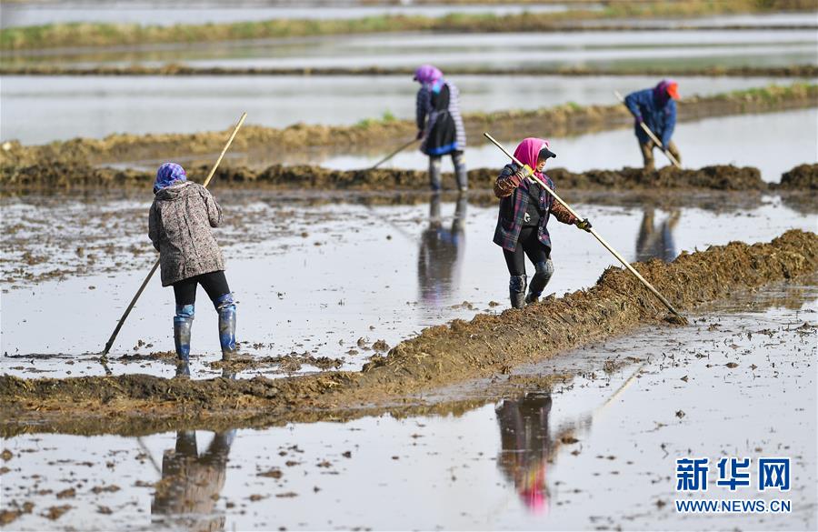 5月17日,在吉林省長春市雙陽區(qū)徐家村,農民在水稻田間耕作。新華社記者許暢攝