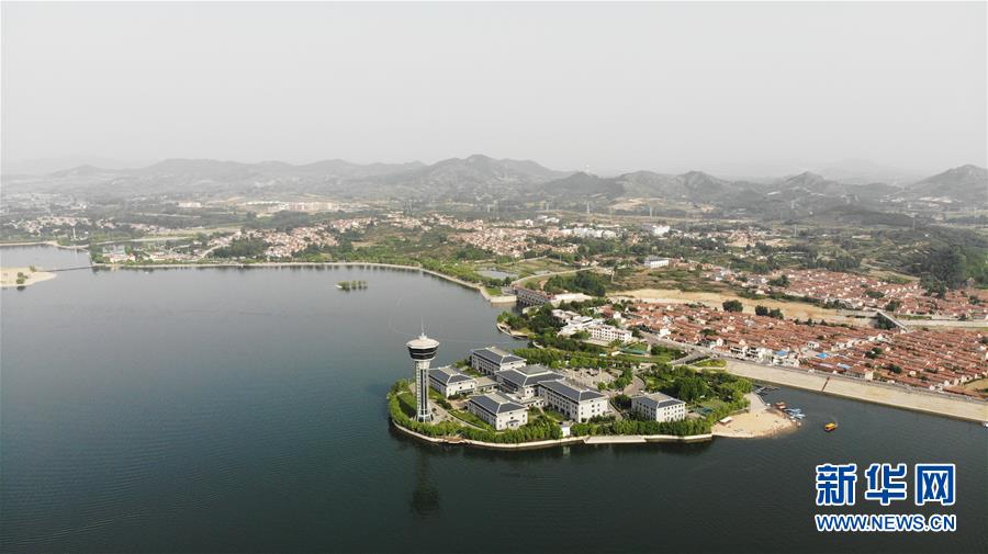 這是5月17日拍攝的雪野湖景色(無人機(jī)照片)。山東濟(jì)南風(fēng)景區(qū)——雪野湖波光粼粼,岸邊綠樹環(huán)抱,加上星星點(diǎn)點(diǎn)的帆船在湖面搖曳,景色宜人。新華社記者王凱攝