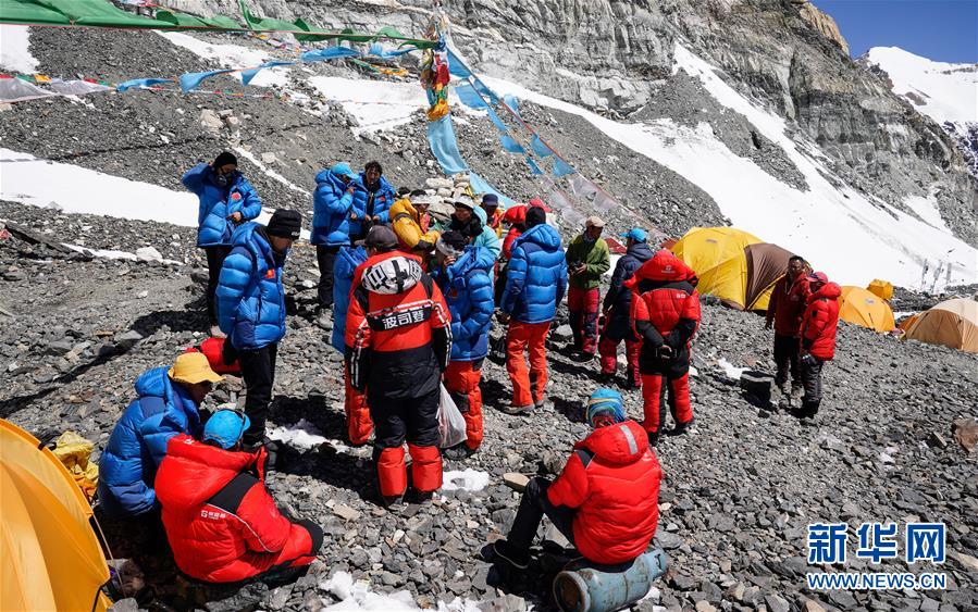 這是在海拔6500米的珠峰前進(jìn)營地拍攝的公布2020珠峰高程測量12人沖頂隊(duì)員名單現(xiàn)場(5月18日攝)。新華社特約記者扎西次仁攝