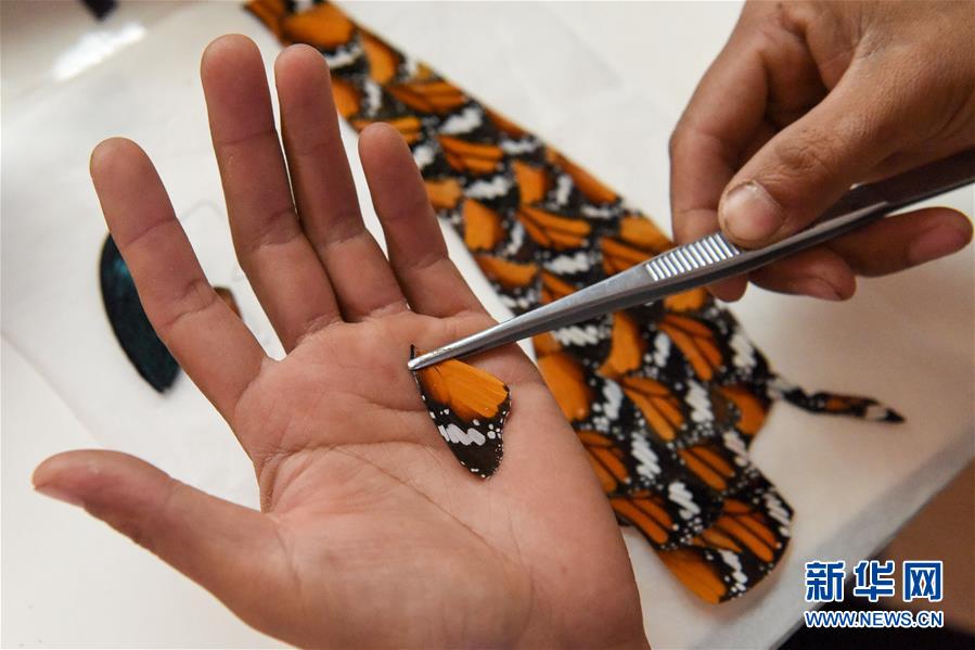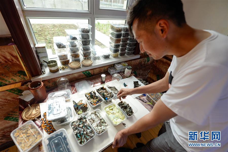 在吉木薩爾縣七彩蝶園,關(guān)富云在制作蝴蝶標(biāo)本(5月15日攝)。走進(jìn)關(guān)富云的七彩蝶園,游客不僅可以近距離接觸翩翩起舞的蝴蝶,還可以欣賞蝴蝶破繭成蝶的蛻變過(guò)程。今年34歲的關(guān)富云用9年的時(shí)間實(shí)現(xiàn)了自己的“蝴蝶夢(mèng)”,完成美麗的“蝶變”。關(guān)富云家住新疆吉木薩爾縣北地社區(qū)。2011年,他看到一檔農(nóng)業(yè)致富節(jié)目,萌生了養(yǎng)殖蝴蝶的想法。關(guān)富云說(shuō),當(dāng)時(shí)蝴蝶養(yǎng)殖還是一種新興產(chǎn)業(yè),他抱著試一試的想法,在海南學(xué)習(xí)了3個(gè)月蝴蝶養(yǎng)殖,帶回100多個(gè)蝶蛹在家試驗(yàn)養(yǎng)殖。蝴蝶的生存周期短,在當(dāng)?shù)仞B(yǎng)殖需要克服溫度、濕度、病蟲害等問題。關(guān)富云不斷嘗試,越挫越勇,羽化成功的蝴蝶在2014年終于突破了萬(wàn)只。蝴蝶的色彩艷麗,活體蝴蝶可用于婚慶、開業(yè)慶典等活動(dòng)中放飛,可以取得很好的收益。但它的生命短暫,如何才能最大化蝴蝶的效益,留住它的美呢?關(guān)富云動(dòng)起了心思,開始嘗試制作標(biāo)本和蝶翅畫。“和養(yǎng)殖不同,做蝶翅畫是個(gè)創(chuàng)作的過(guò)程,從選擇標(biāo)本到粘貼,每一步都要突出美感。”關(guān)富云介紹,一幅色彩明艷、栩栩如生的蝶翅畫耗時(shí)多日才能完成。如今,關(guān)富云的活體蝴蝶和蝶翅畫通過(guò)線上線下銷售,產(chǎn)品還銷往北京、廈門等地。關(guān)富云的蝴蝶產(chǎn)品得到市場(chǎng)的認(rèn)可,政府也對(duì)他給予大力支持。2019年,吉木薩爾縣在泉子街鎮(zhèn)建起蝴蝶觀賞園,吸引了不少游客到此參觀游玩。對(duì)于未來(lái)的發(fā)展,關(guān)富云信心滿滿,“我希望把蝴蝶產(chǎn)業(yè)發(fā)展到天山南北,讓人們?cè)诤涞亩疽材苡^賞到蝴蝶,并且讓更多人參與其中,致富脫貧”。新華社記者丁磊攝