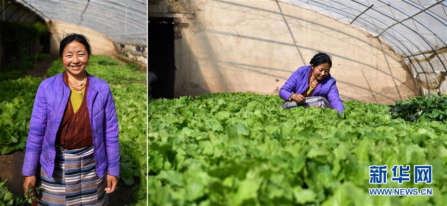 拼版照片:左圖為西藏昌都市左貢縣旺達鎮(zhèn)列達村村民阿旺拉珍;右圖為阿旺拉珍在左貢縣旺達鎮(zhèn)列達村的蔬菜大棚里忙碌。近年來,列達村大力發(fā)展蔬菜產(chǎn)業(yè),建起溫室大棚30座,按照每4戶1座大棚的模式進行種植、管理和銷售。阿旺拉珍在大棚里種了白菜、辣椒和白蘿卜,一年收入近萬元(5月7日攝)。新華社記者詹彥攝