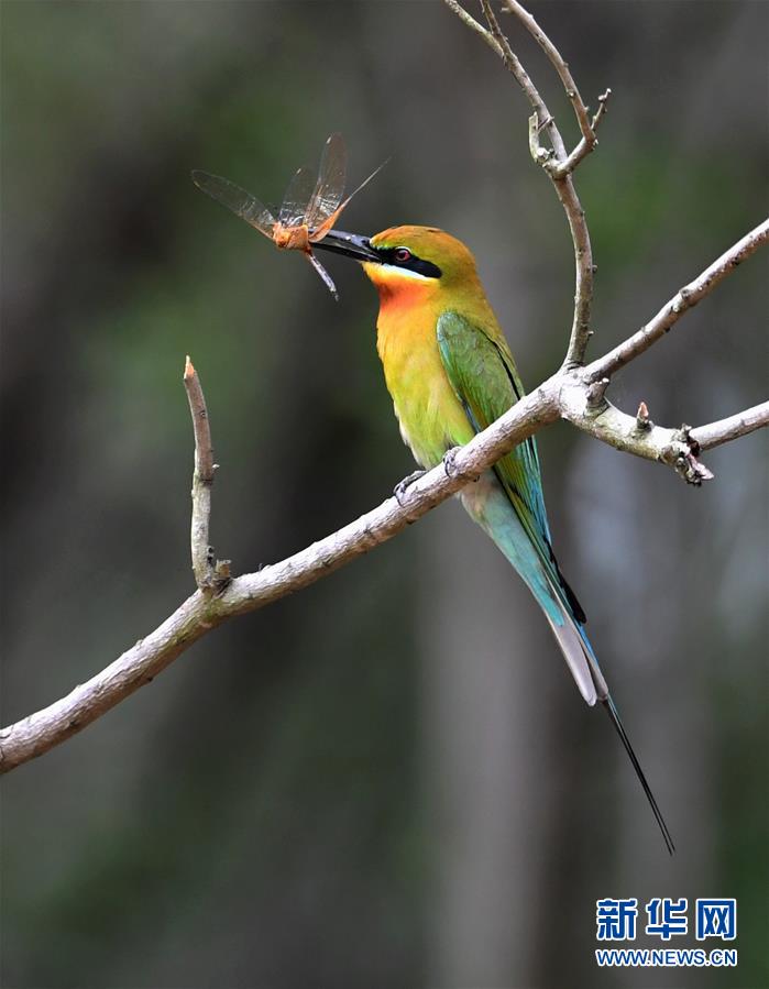 5月19日,在廈門五緣灣栗喉蜂虎自然保護(hù)區(qū),栗喉蜂虎捕到一只昆蟲(chóng)。近日,大批栗喉蜂虎來(lái)到廈門五緣灣栗喉蜂虎自然保護(hù)區(qū)棲息、繁殖。新華社記者魏培全攝