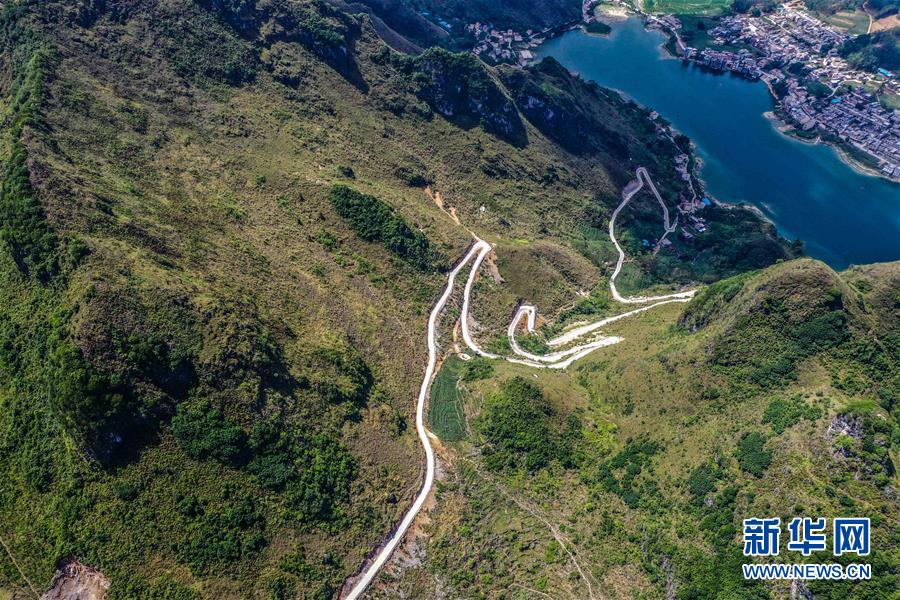 這是通向大化瑤族自治縣七百弄鄉(xiāng)弄平村的山路(5月15日攝,無人機(jī)照片)。新華社記者曹祎銘攝