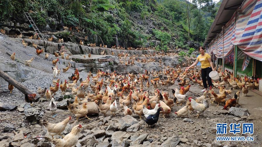 大化瑤族自治縣雅龍鄉(xiāng)勝利村一名群眾在喂養(yǎng)“七百弄雞”(2019年9月11日攝)。新華社記者張愛林?jǐn)z